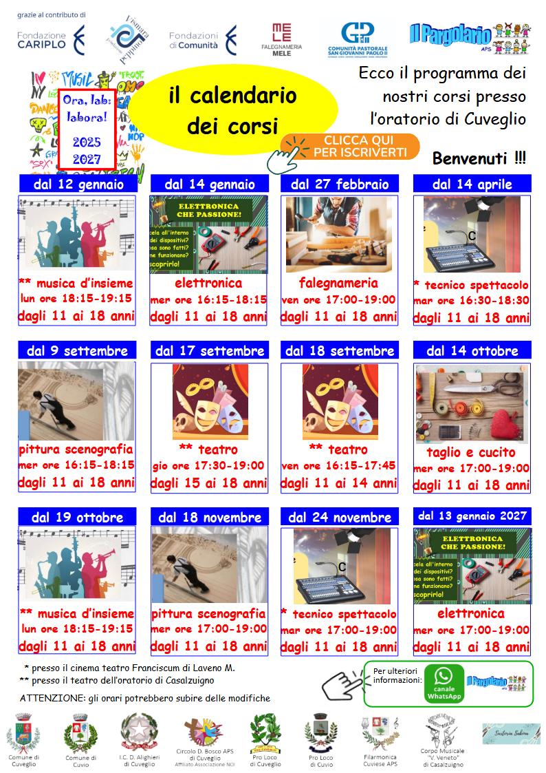 Si rende noto il nuovo calendario corsi presso l'Oratorio di Cuveglio.